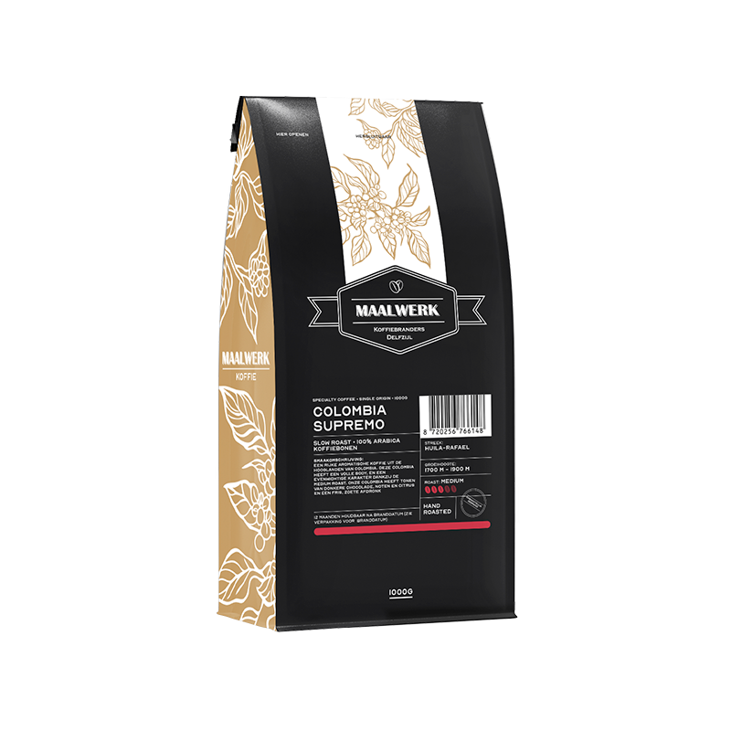 Dit proeft u ook direct terug in deze overheerlijke Colombia Supremo koffie. Onze Colombia heeft een volle ronde body met bloemrijke aroma’s en karakteristieke smaaktonen van pure chocolade en noten en een licht frisse karamelachtige afdronk.